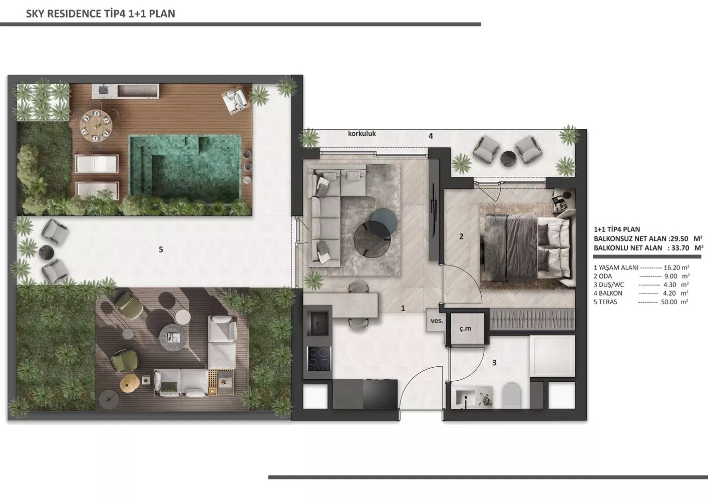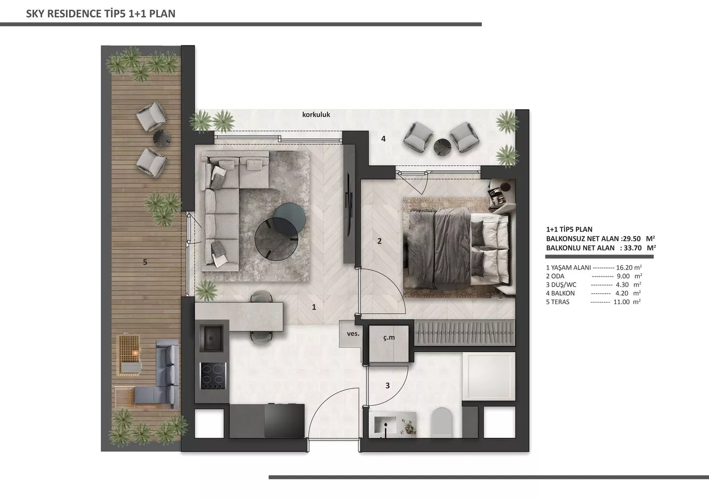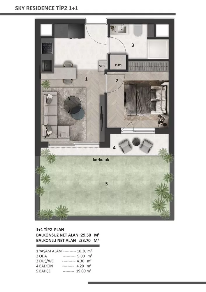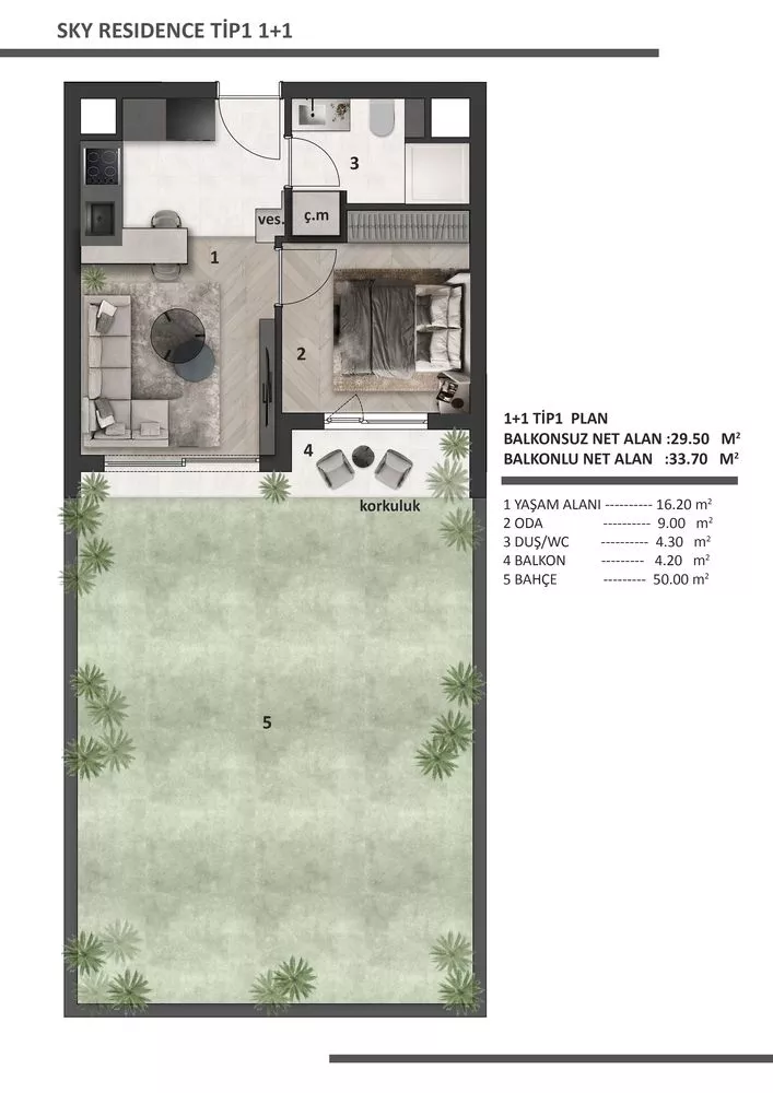 Sky Residance Tip5 1+1 Daire: