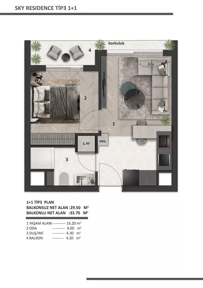 Sky Residance Tip3 1+1 Daire: